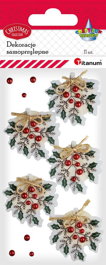 Wprowadzenie » ŚWIĄTECZNE UPOMINKI » Dekoracja samoprzylepna gałązka 4szt 33mm Titanum