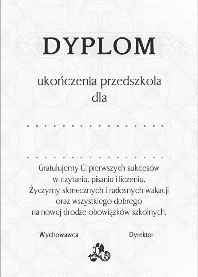 Wprowadzenie » ARTYKUŁY SZKOLNE » Dyplom składany ukończenia Przedszkola z nadrukiem 250g B5 10ark. Warta