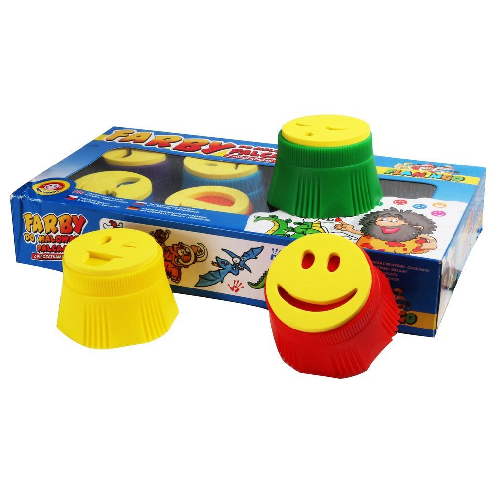 Wprowadzenie » ARTYKUŁY SZKOLNE » Farby do malowania palcami 8 kolorów 25ml + pieczątki Flamingo