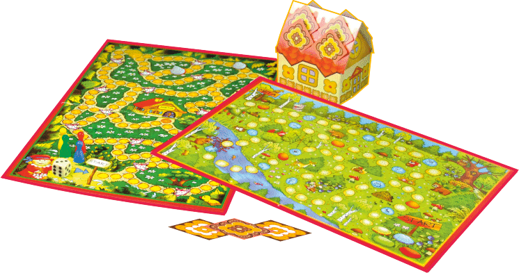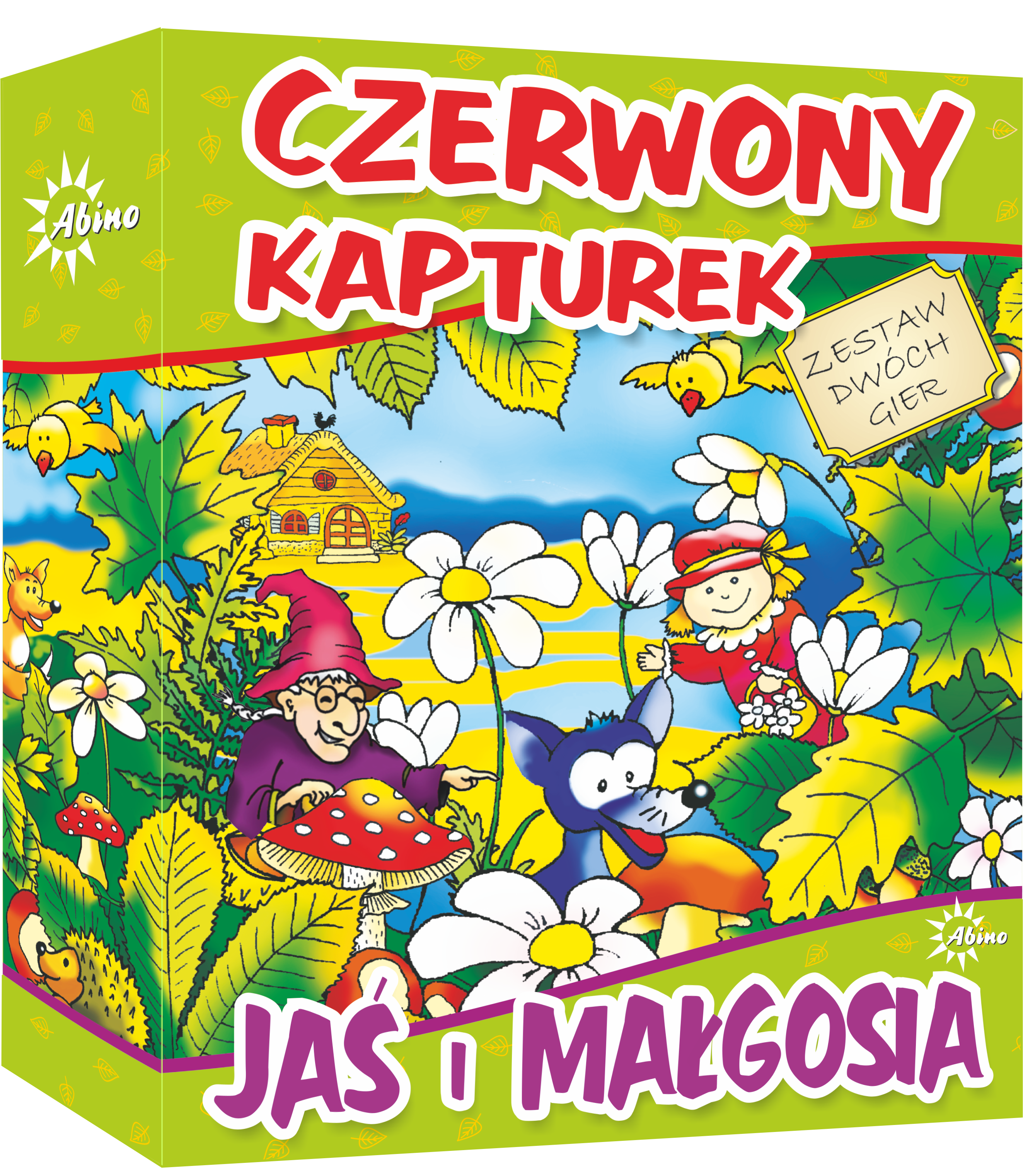 Zestaw dwóch bajecznie kolorowych gier zawierający dla najmłodszych grę opartą na motywach bajki o Czerwonym Kapturku oraz grę na motywach bajki o Jasiu i Małgosi.