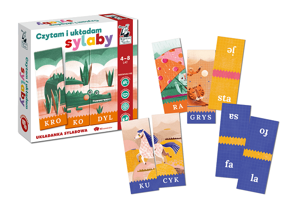 Czytam i układam sylaby to niezwykła układanka, która oswaja dziecko z metodą czytania sylabowego. Zabawa pozytywnie wpłynie na rozwój mowy dziecka, koncentracji i motoryki małej. Ukształtuje również poprawny kierunek czytania od lewej do prawej strony.