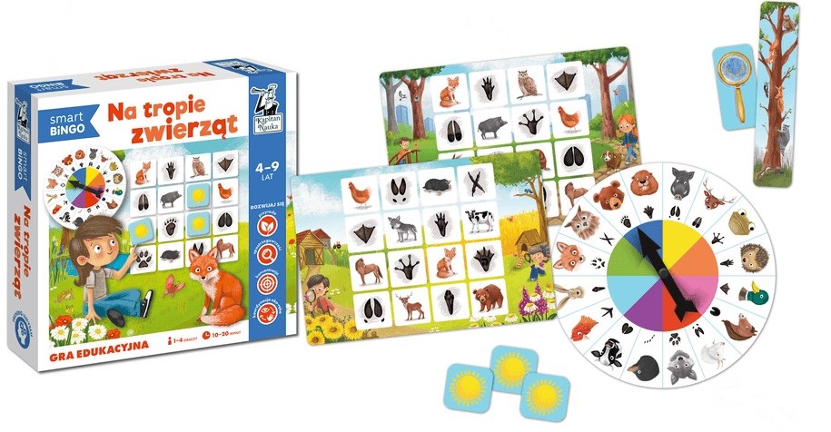 Smart Bingo. Na tropie zwierząt to gra edukacyjna dla przedszkolaków i młodszych uczniów, którzy interesują się zwierzętami, lubią je obserwować i spędzać czas w kontakcie z przyrodą. Podczas rozgrywek poćwiczą koncentrację, refleks i spostrzegawczość, a w drodze do zwycięstwa nauczą się strategicznego działania. Gra sprawdzi się podczas rodzinnych rozgrywek i do zabawy w pojedynkę.