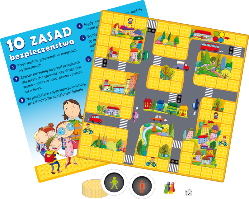 Troską każdego rodzica jest bezpieczeństwo dziecka podczas drogi do i ze szkoły. „Bezpieczna droga” to gra, która uczy dziecko podstawowych zasad przechodzenia przez jezdnię. W trakcie rozgrywki można też porozmawiać o niebezpiecznych sytuacjach, które mogą zdarzyć się na drodze i przekazać cenne wskazówki. Pomogą w tym zasady bezpieczeństwa opisane na drugiej stronie planszy.