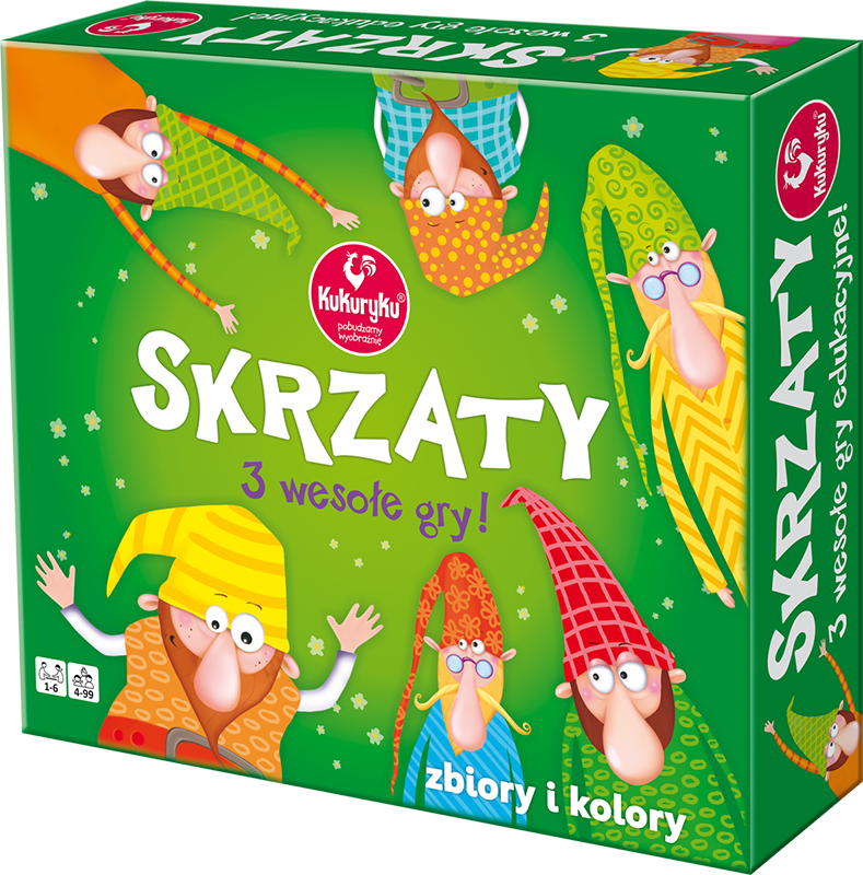 Skrzaty to zestaw wesołych gier dla całej rodziny. Trzech skrzacich braci zachęca do zabawy i nauki. Gry uczą rozróżniania wzorów, kolorów, kształtów, rozpoznawania szczegółów, ich analizowania i porównywania, ćwiczą spostrzegawczość i refleks.