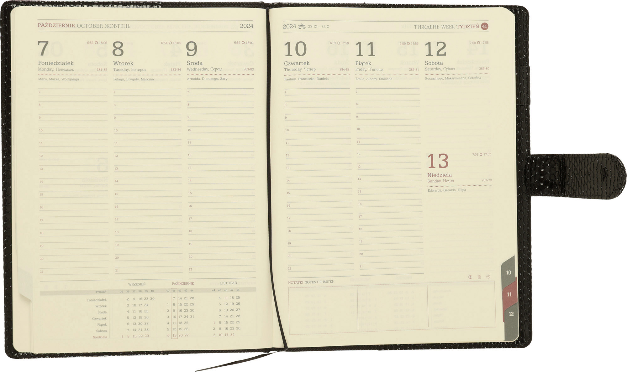 - w dolnej części strony skrócone kalendarium miesięczne notes, skorowidz tele-adresowy