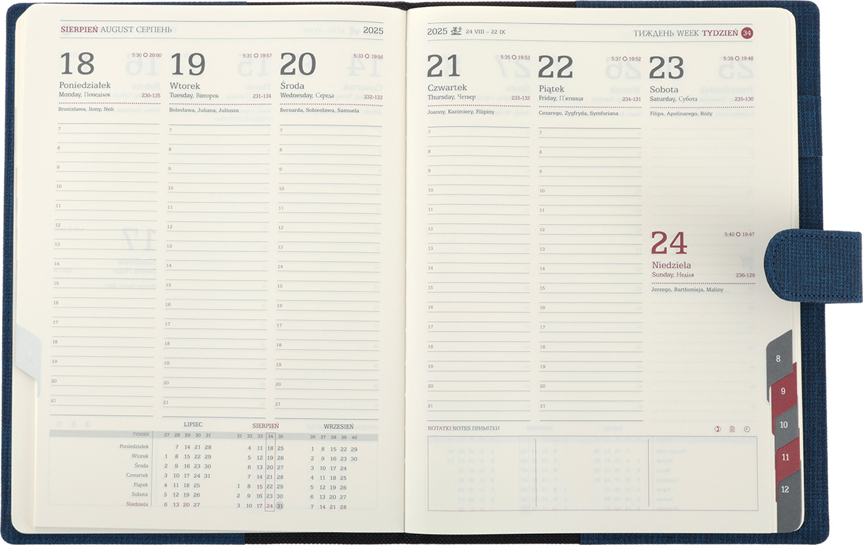 - w dolnej części strony skrócone kalendarium miesięczne notes, skorowidz tele-adresowy