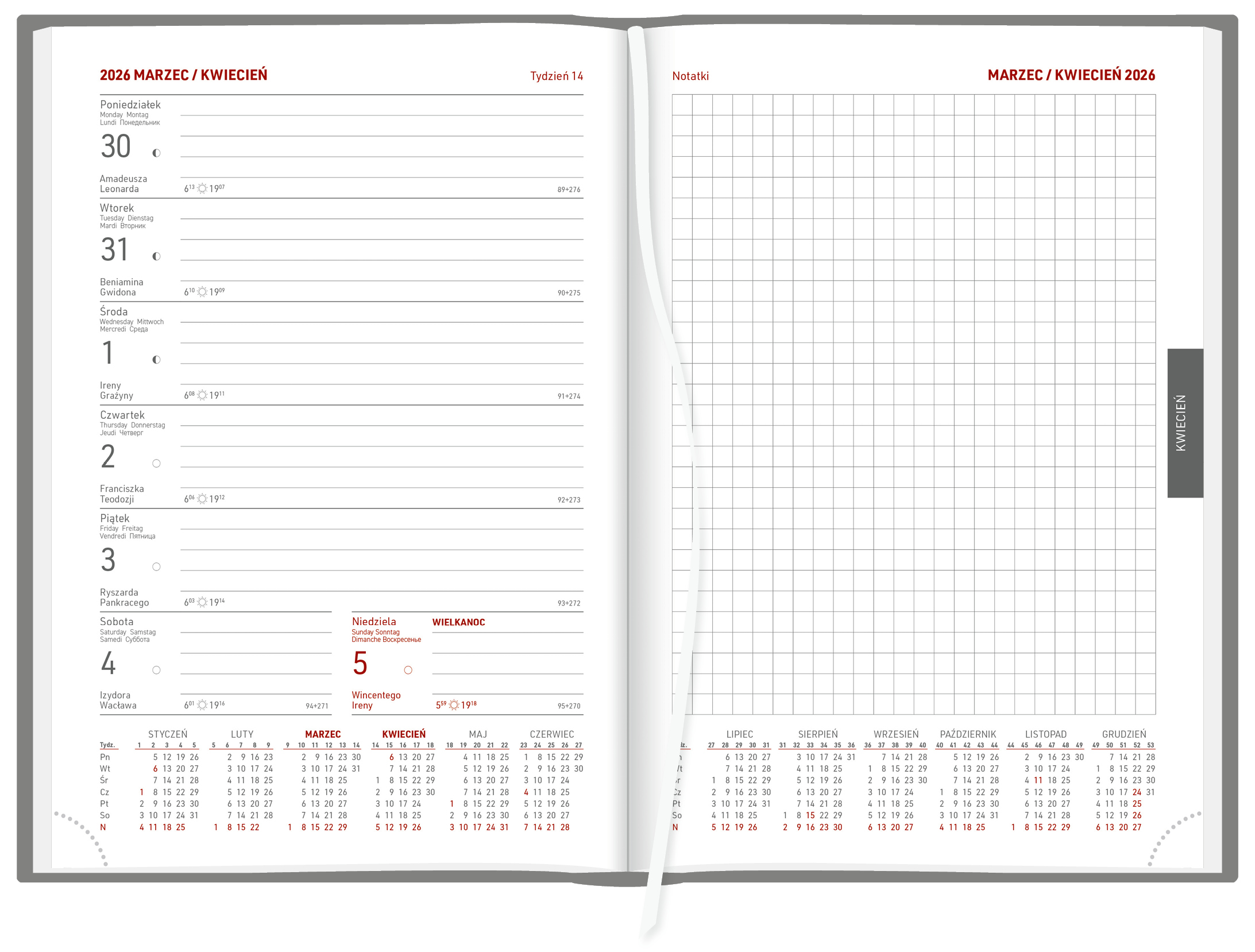 Kalendarz książkowy tygodniowy z notesem A4 2026 Aluminium Wokół Nas