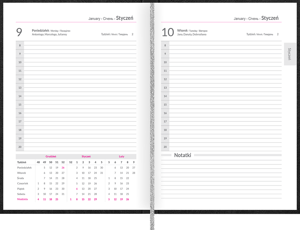 Kalendarze ścienne Herlitz na 2026 rok to propozycja, która łączy praktyczne planowanie z atrakcyjnym wzornictwem. W ofercie znajdują się aż cztery różne motywy – każdy z nich zaprojektowany z myślą o innym typie użytkownika: „Kalendarz Kociarza” i „Kalendarz Psiarza” to propozycje pełne humoru i uroku dla miłośników zwierząt, „Flowers” zachwyca estetyką zmysłowych kadrów florystycznych, a „The Road Is Home” to hołd dla tych, którzy kochają podróże i górskie krajobrazy. Każdy kalendarz został wyposażony w czytelny układ miesięczny z zaznaczonymi świętami i imieninami, co czyni go doskonałym narzędziem do planowania domowego, biurowego lub szkolnego. Dzięki poręcznemu formatowi A4 w pionie świetnie sprawdzi się nawet w ograniczonej przestrzeni. Czarna spirala z zawieszką umożliwia łatwe powieszenie i wygodne przewracanie kart, a staranne wykonanie sprawia, że kalendarz będzie praktyczną ozdobą przez cały rok.