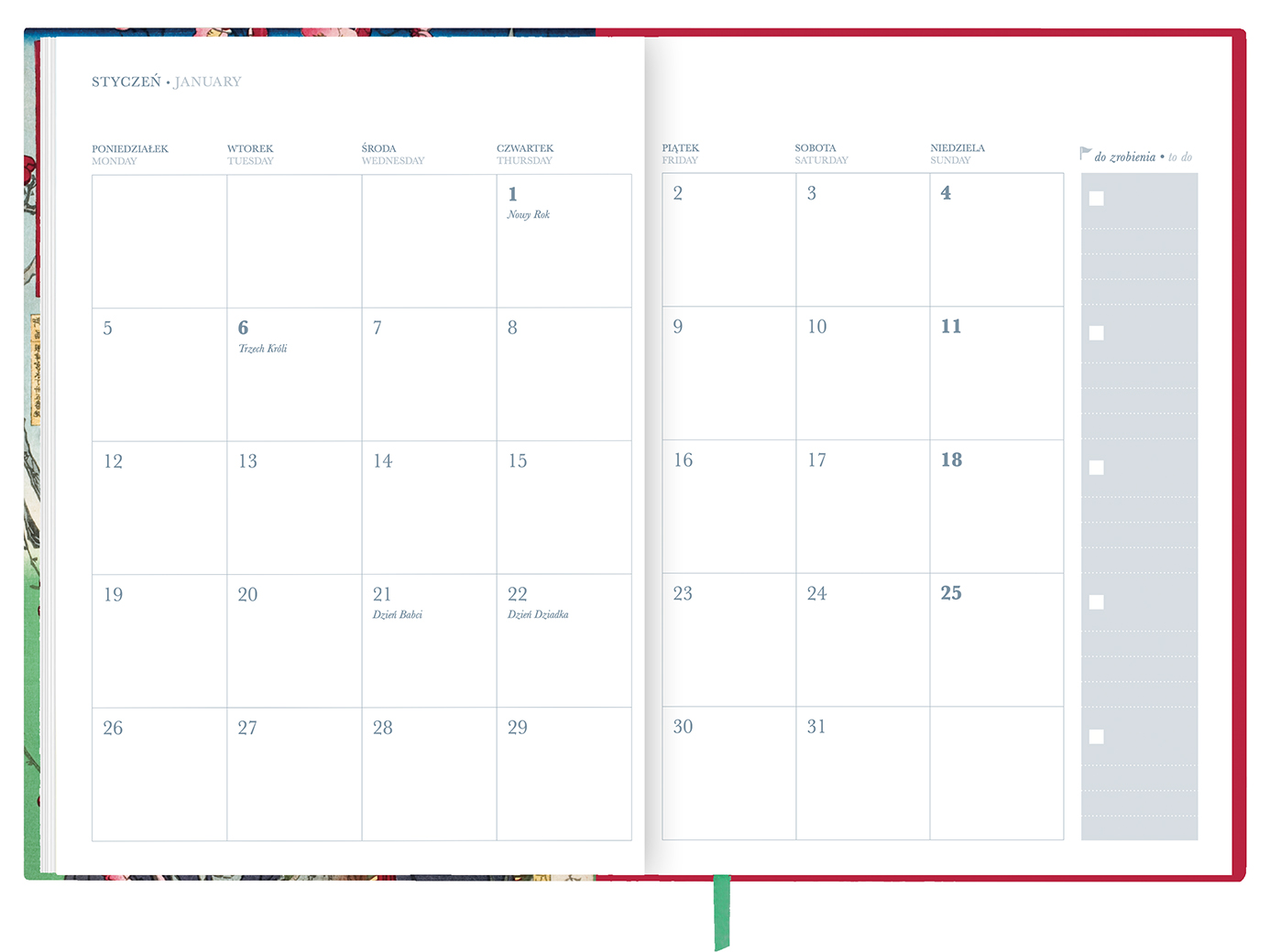 Wygoda użytkowania – tasiemki-zakładki oraz łatwe otwieranie kalendarza