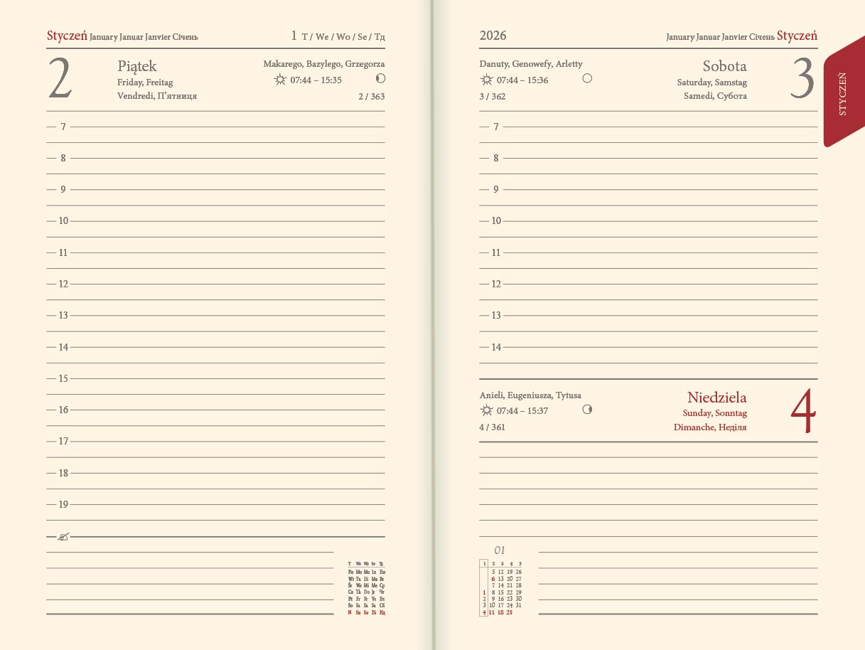 Wprowadzenie » KALENDARZE 2026 ROK » Kalendarz terminarz książkowy dzienny 2026 B6 Soft Lucrum