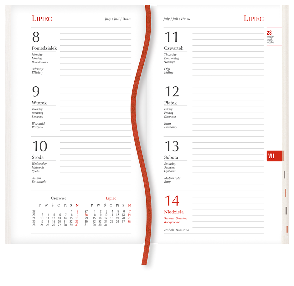 Oprawa: okładka barwna foliowana, jedna tasiemka.