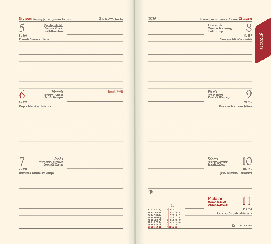 Wprowadzenie » KALENDARZE 2026 ROK » Kalendarz terminarz książkowy tygodniowy A6 2026 Relief-Vivella Lucrum