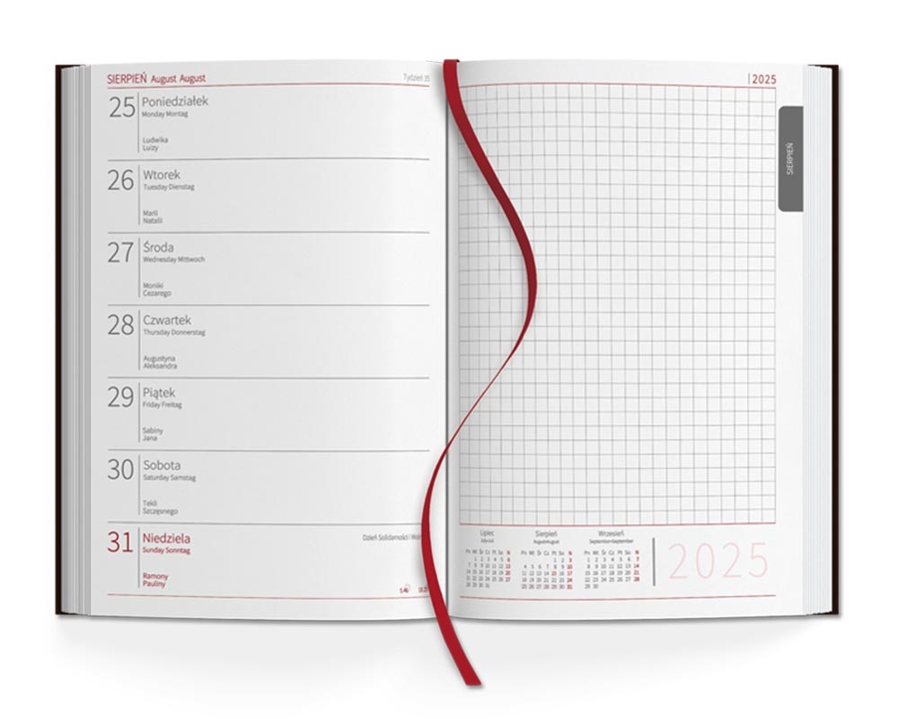 Kalendarium: w języku polskim, angielskim, niemieckim, numeracja tygodni, podwójne imieniny