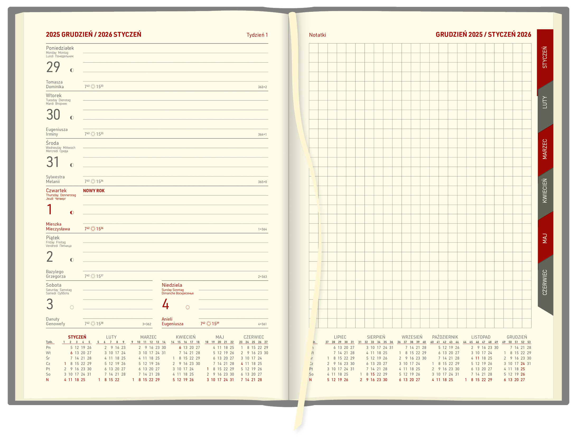 Wprowadzenie » KALENDARZE 2026 ROK » Kalendarz terminarz książkowy tygodniowy z notesem z registrami B5 2026 Piko Wokół Nas