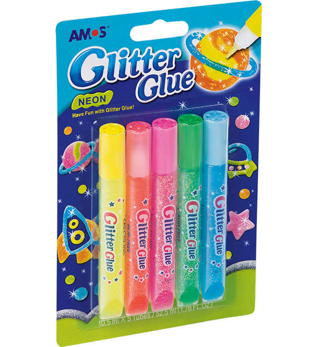 Wprowadzenie » ARTYKUŁY SZKOLNE » Klej brokatowy neon 5 kolorów 10,5ml Amos