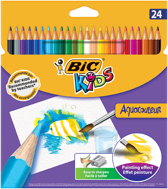 Wprowadzenie » ARTYKUŁY SZKOLNE » Kredki akwarelowe 24 kolory Aquacouleur Kids BIC