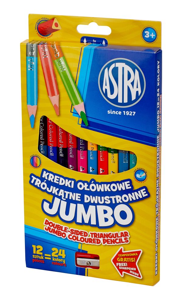 Kredki ołówkowe dwustronne jumbo 12=24 kolory Astra