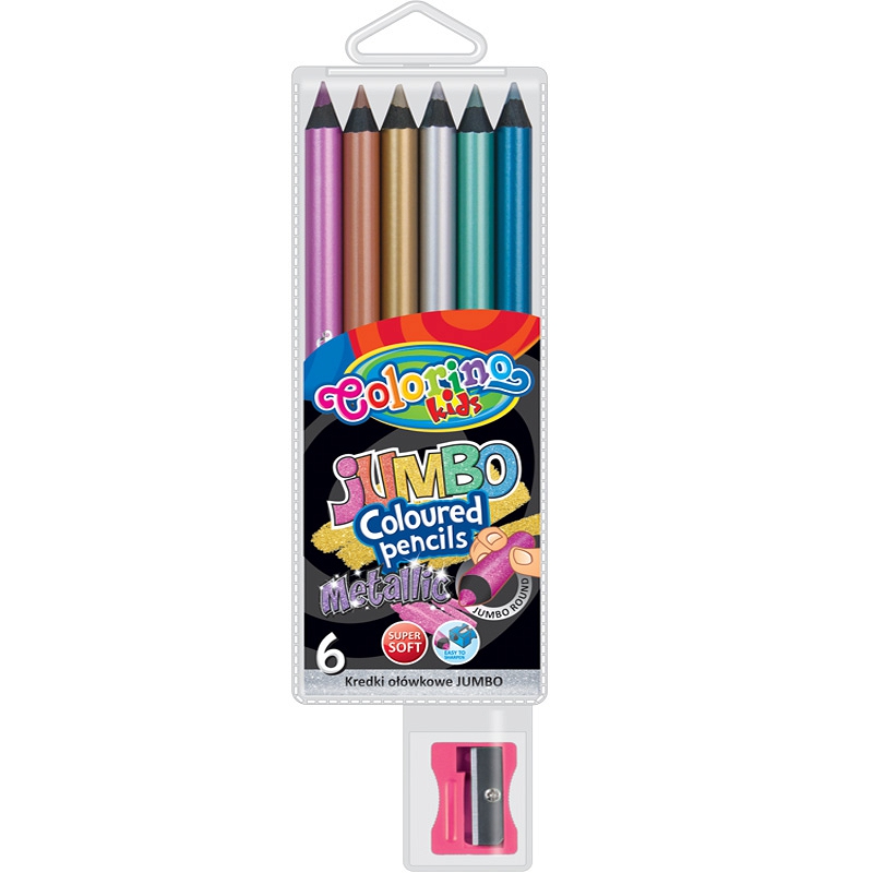Wprowadzenie » ARTYKUŁY SZKOLNE » Kredki ołówkowe jumbo 6 kolorów metalicznych Colorino Kids