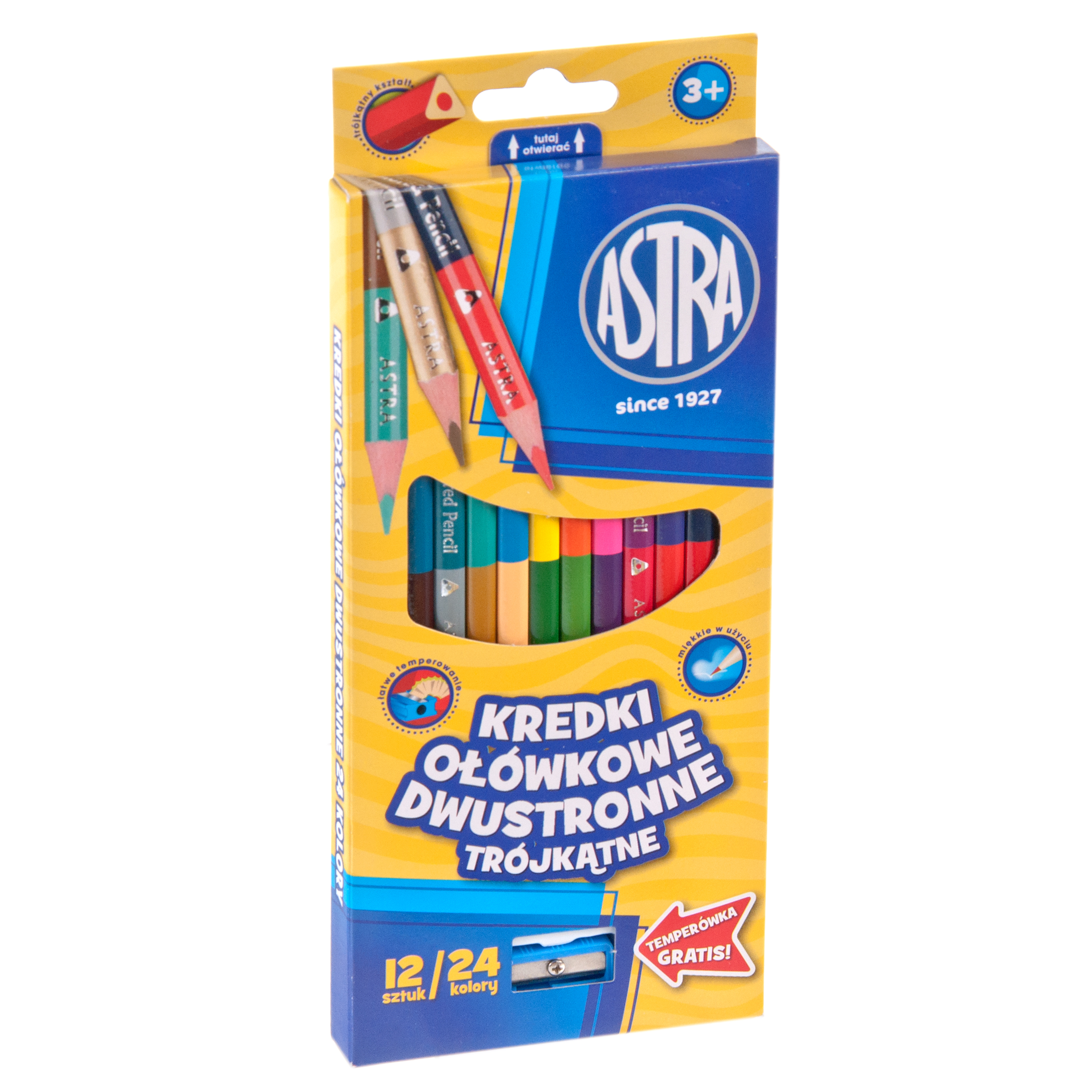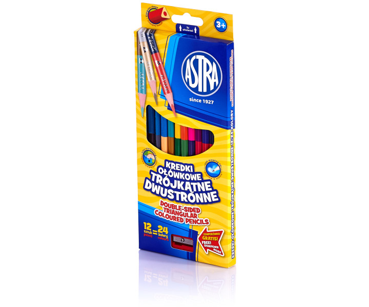 Kredki ołówkowe trójkątne dwustronne 12=24 kolory Astra