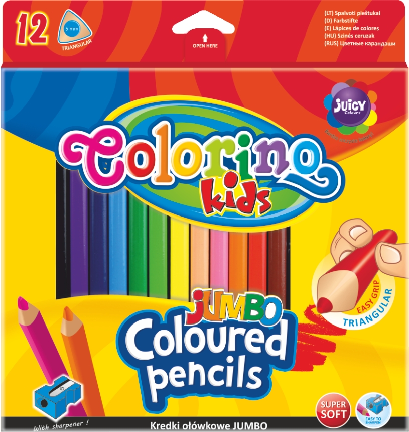 Wprowadzenie » ARTYKUŁY SZKOLNE » Kredki ołówkowe trójkątne jumbo 12 kolorów Colorino Kids