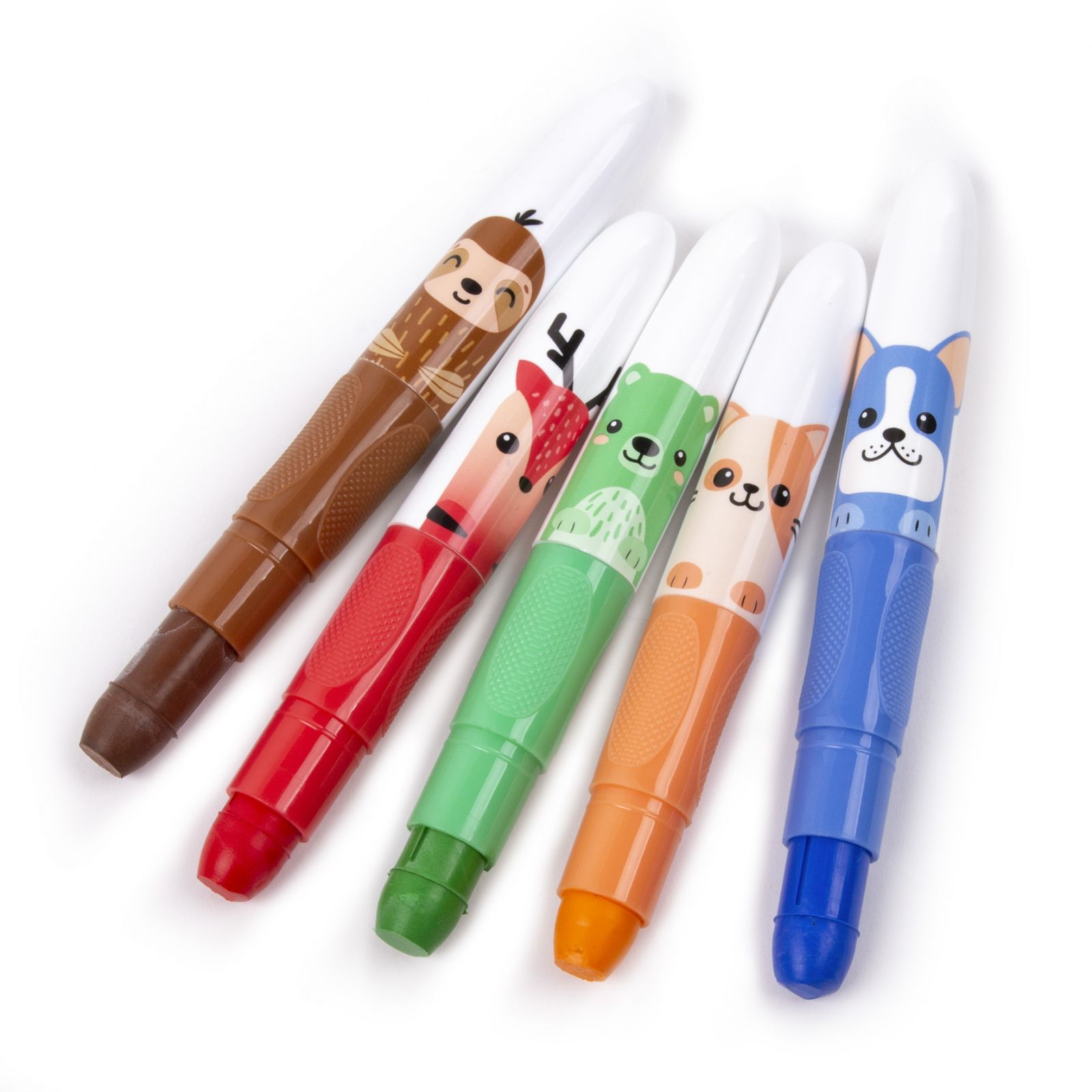 Kredki żelowe ze słodkimi kotkami na końcówce. Dzięki swojej żelowej formule rysowanie nimi jest gładkie i przyjemne. Są bardzo wydajne, miękkie i dobrze kryją. Nie wymagają temperowania – ich wkład wysuwa się za pomocą pokrętła. Idealne dla dzieci, które dopiero rozpoczynają przygodę z plastyką