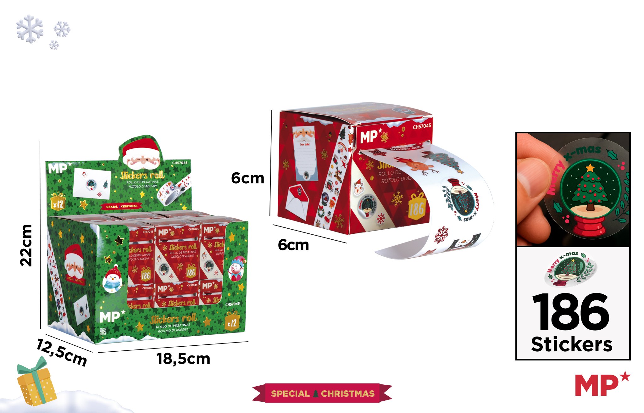 Świąteczne naklejki w rolce. Rozmiar: 5 × 250cm, ok. 180 małych naklejek na rolce.