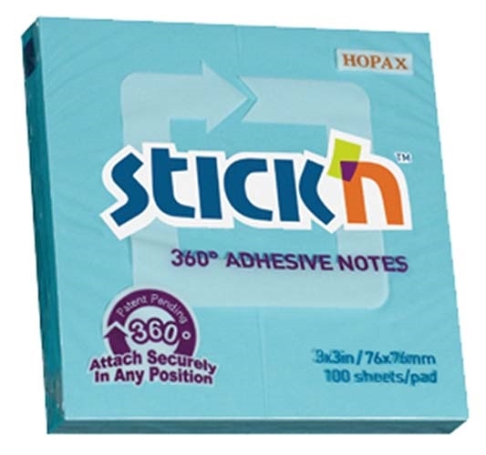 Wprowadzenie » NOTESY i ZAKŁADKI » Notes samoprzylepny 360* niebieski 76x76/100kart. Stick'n