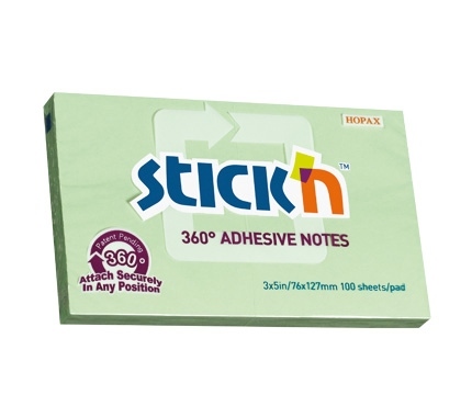 Wprowadzenie » NOTESY i ZAKŁADKI » Notes samoprzylepny 360* zielony 76x127/100kart. Stick'n