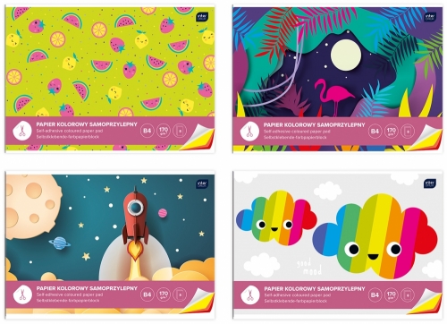 Wprowadzenie » ARTYKUŁY SZKOLNE » Papier kolorowy samoprzylepny 170g B4/8 kart. Interdruk