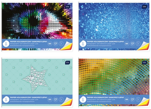 Wprowadzenie » ARTYKUŁY SZKOLNE » Papier kolorowy samoprzylepny holograficzny 170g B5/6kart. Interdruk