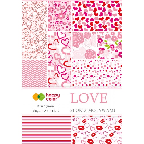 Papier kolorowy z motywami Love A4/15kart Happy Color