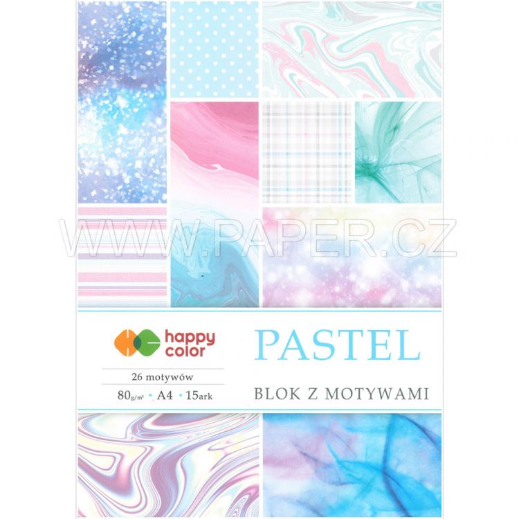 Papier kolorowy z motywami Pastel A4/15kart Happy Color