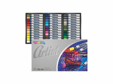 Intensywne i trwałe kolory. Pozwalają uzyskać subtelne efekty cieni i mieszania kolorów. Mogą być używane na sucho oraz na mokro z terpentyną. Dobrze kryjące. Można używać na papierze, kartonie, płótnie.