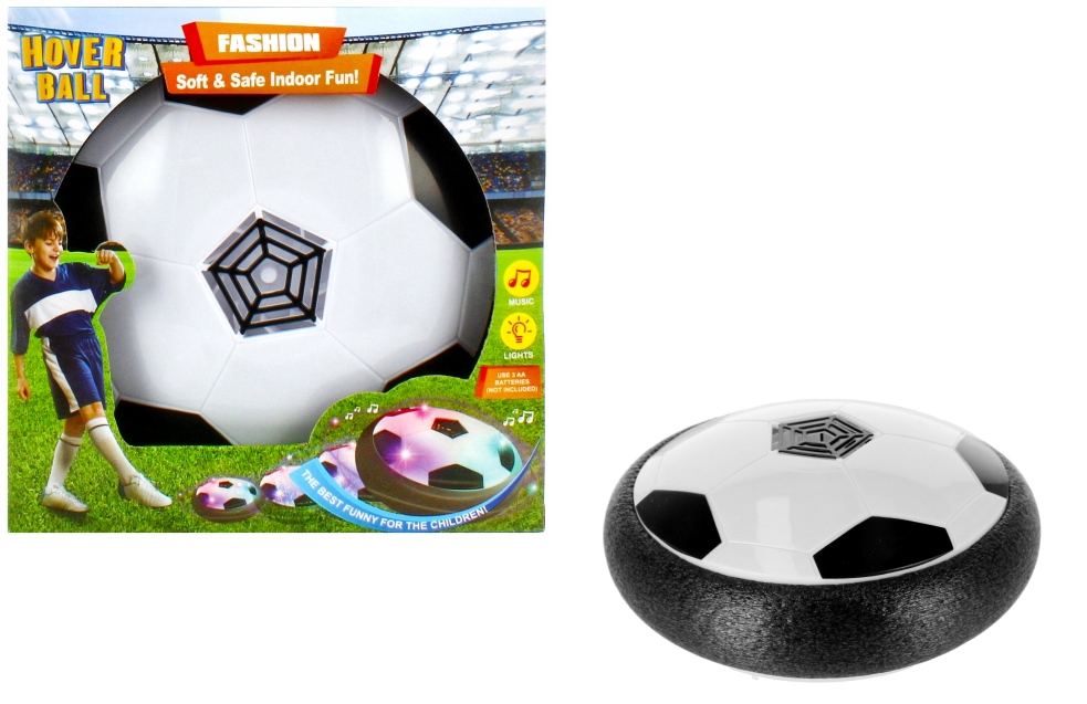 Porusza się jak poduszkowiec po powierzchni płaskiej więc rodzice nie muszą się już niczego obawiać! Produkt posiada efekty świetlne. Piłka wykonana z plastiku.