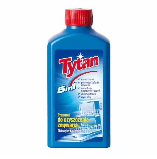 Tytan do czyszczenia zmywarki to wysoce specjalistyczny preparat, który działą w 5 obszarach: