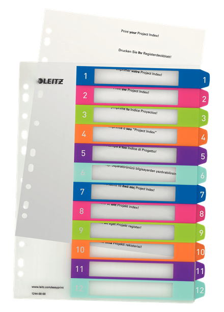 Wprowadzenie » ARCHIWIZACJA DOKUMENTÓW » Przekładki A4 Maxi numeryczne 1-12 z kartą opisową plastikowe Leitz