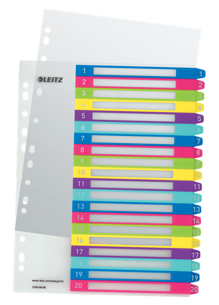 Wprowadzenie » ARCHIWIZACJA DOKUMENTÓW » Przekładki A4 Maxi numeryczne 1-20 z kartą opisową plastikowe Leitz