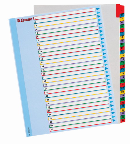 Wprowadzenie » ARCHIWIZACJA DOKUMENTÓW » Przekładki A4 nr 1-31 Mylar Maxi z kartą wielokrotnego opisu kartonowe Esselte