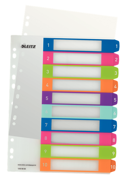 Wprowadzenie » ARCHIWIZACJA DOKUMENTÓW » PRZEKŁADKI » Przekładki A4 numeryczne 1-10 Maxi z kartą opisową plastikowe Leitz