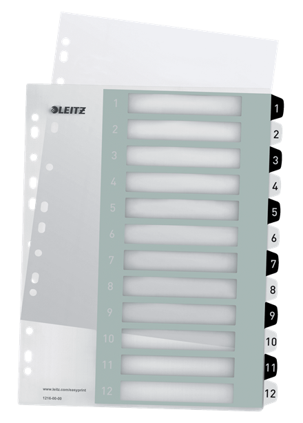Wprowadzenie » ARCHIWIZACJA DOKUMENTÓW » Przekładki A4 numeryczne 1-12 Maxi plastikowe PP WOW Leitz