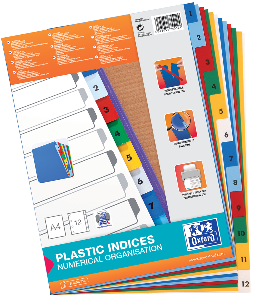 Wprowadzenie » ARCHIWIZACJA DOKUMENTÓW » Przekładki A4 numeryczne 1-12 plastikowe PP Oxford