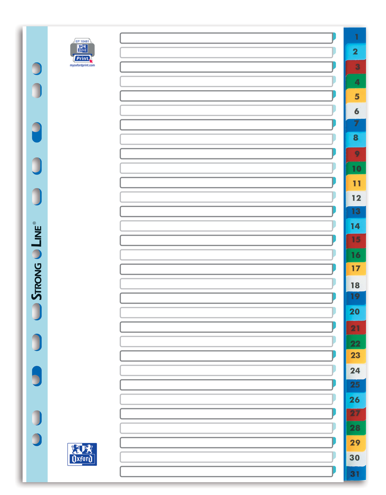 Wprowadzenie » ARCHIWIZACJA DOKUMENTÓW » Przekładki A4 numeryczne 1-31 plastikowe PP Oxford