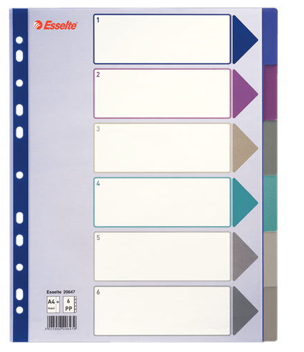 Wprowadzenie » ARCHIWIZACJA DOKUMENTÓW » Przekładki plastikowe A4+ 6 kolorów Maxi PP Esselte