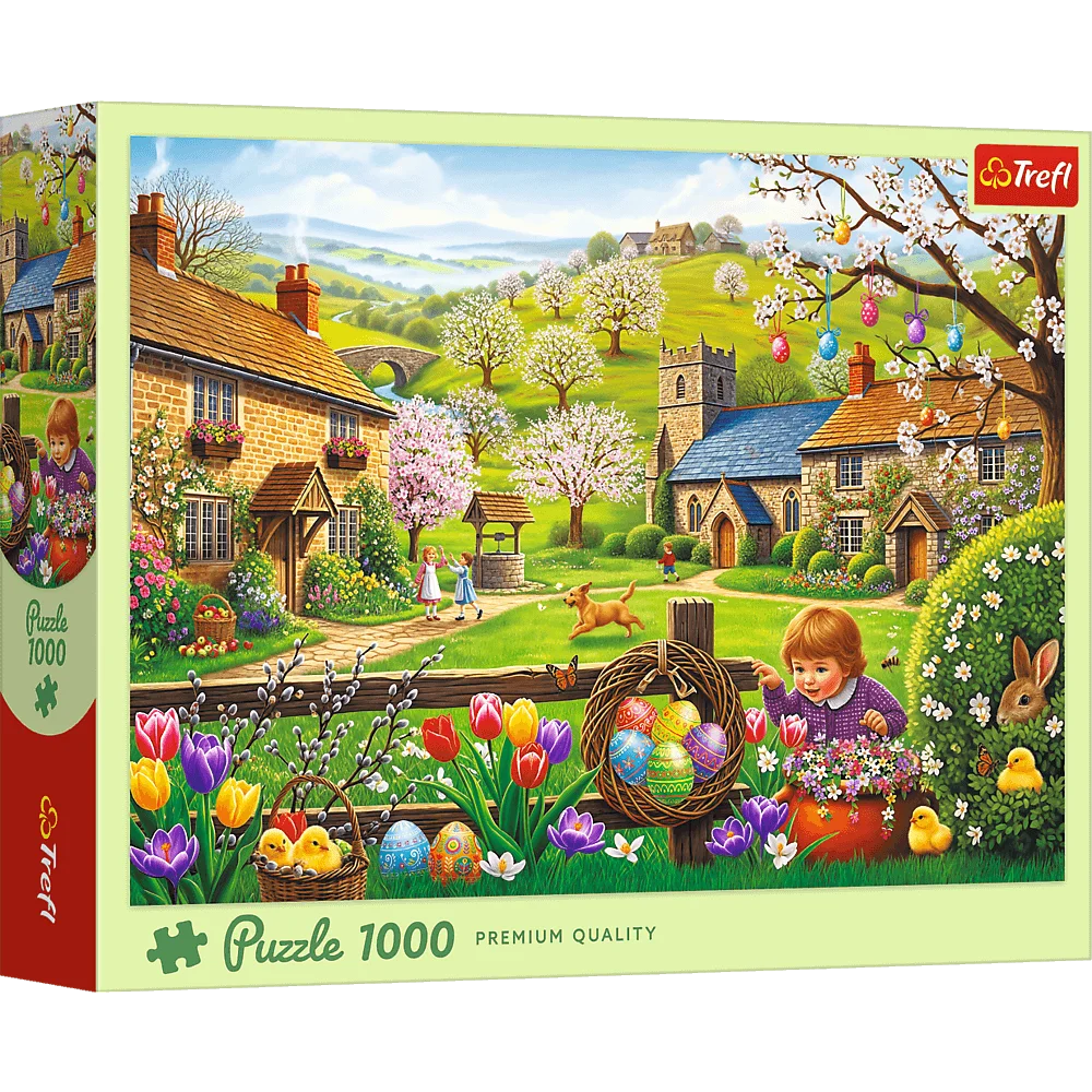 Wprowadzenie » WIELKANOC » Puzzle 1000 elementów poszukiwanie jajek wielkanocnych Trefl