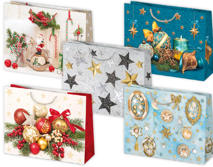 Wprowadzenie » ŚWIĄTECZNE UPOMINKI » Torebka ozdobna świąteczna 38x29x10cm 10szt Pol-Mak