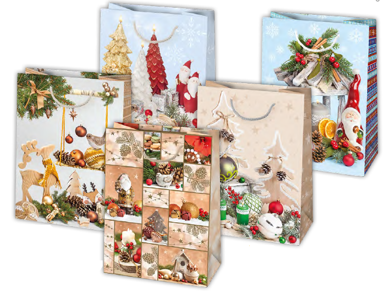 Wprowadzenie » ŚWIĄTECZNE UPOMINKI » Torebka ozdobna świąteczna 45x38x13cm 10szt Pol-Mak