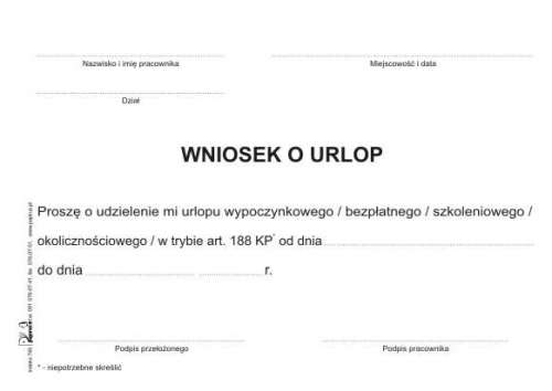 Wprowadzenie » DRUKI AKCYDENSOWE » Wniosek o urlop A6/60kart. PapirusII